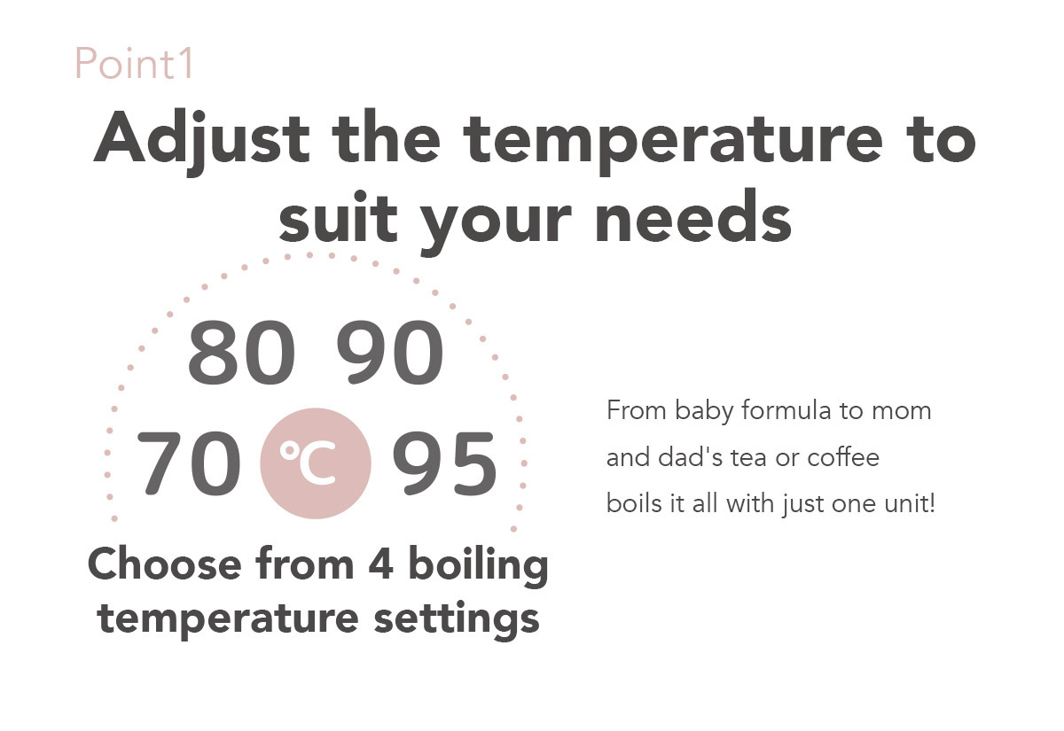 The “Travel Temperature-Controlled Kettle” boils water from 200ml simply by plugging it into an outlet or portable power source!