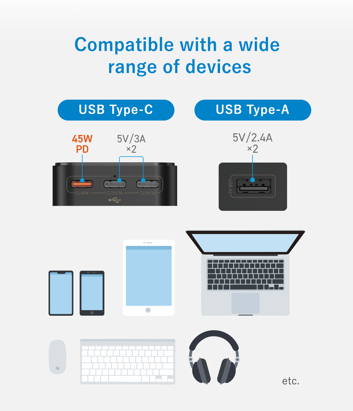 USB-A×2 :When single connection / USB-A/5V/2.4A