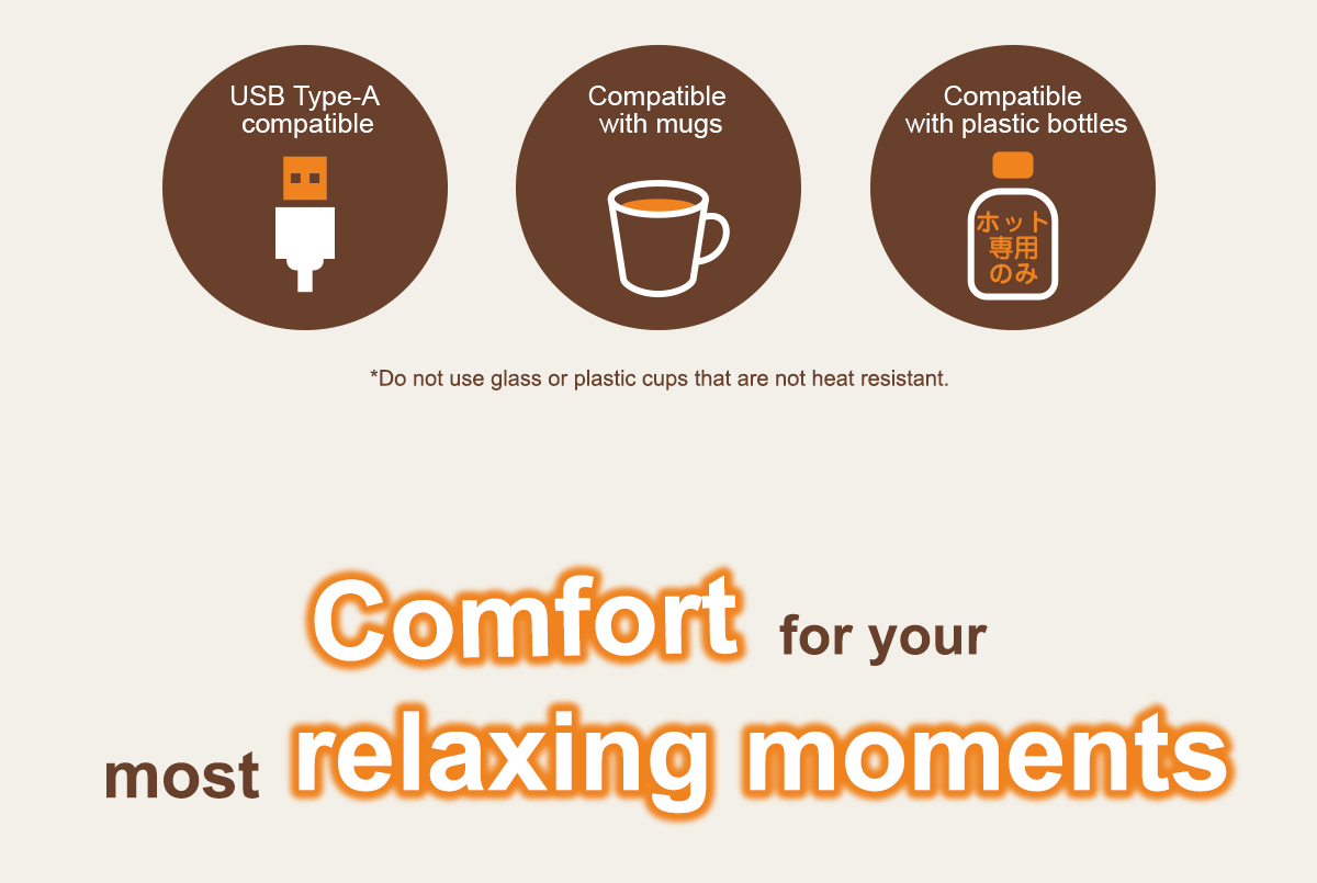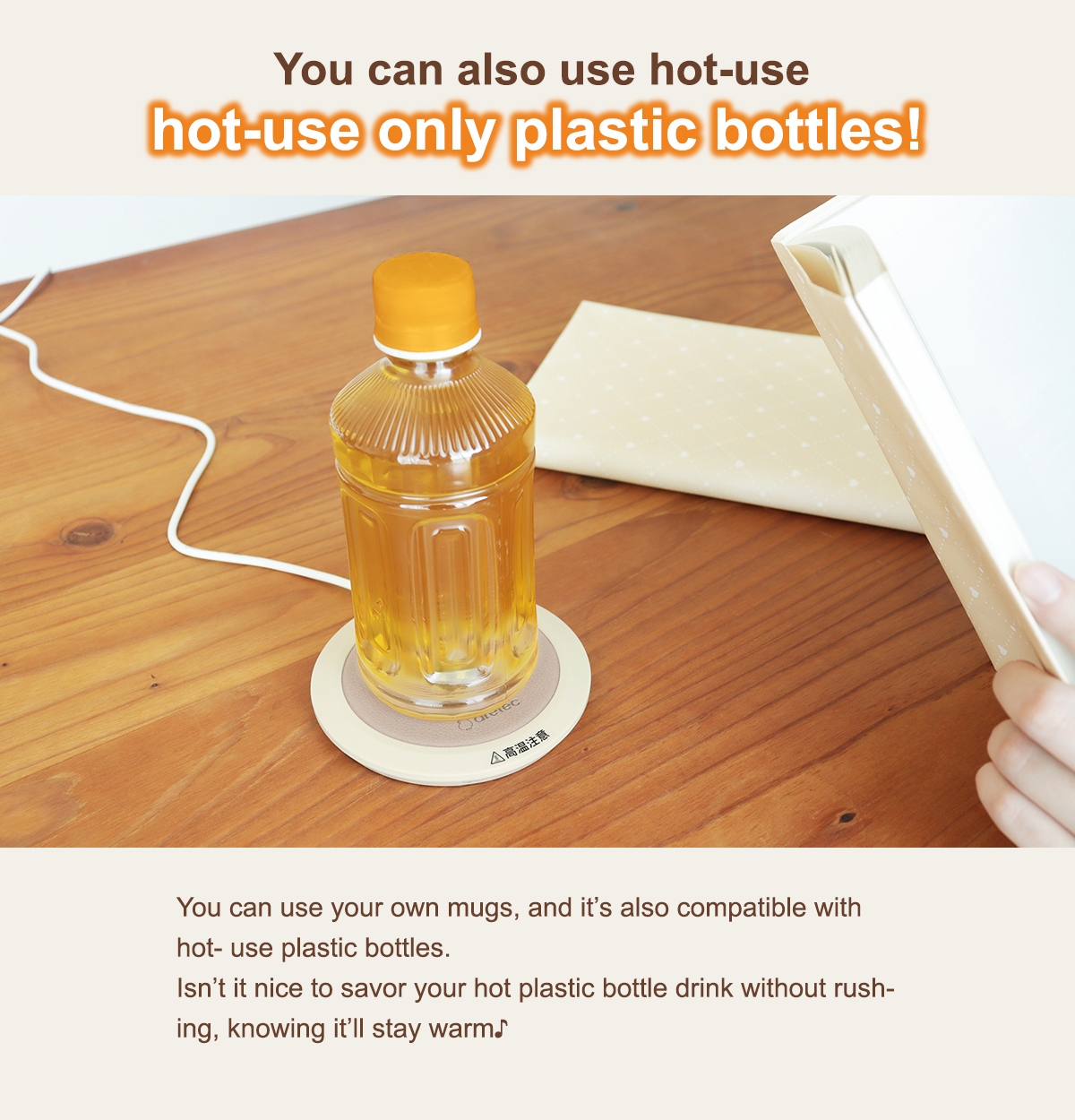 - Keeps drinks in mugs and hot-use only plastic bottles warm longer.
