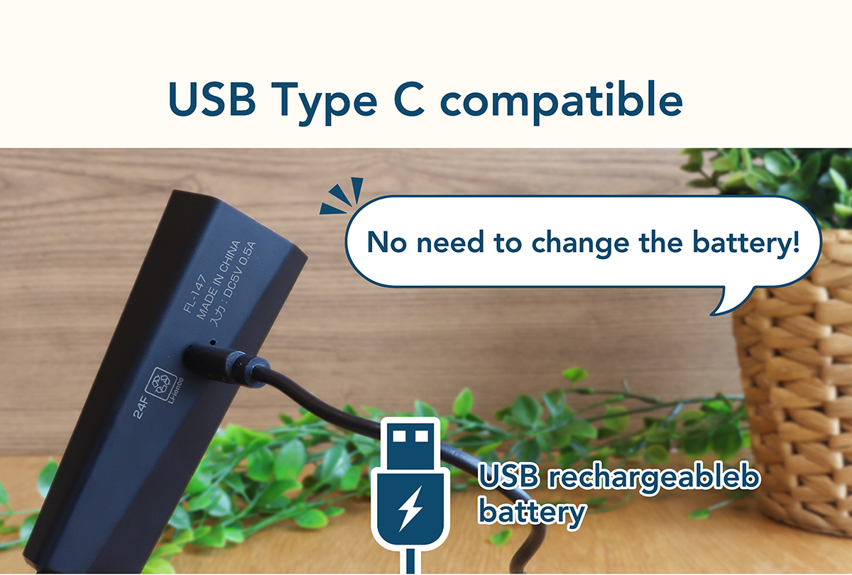 - USB cable for charging(USB type A-USB type C ) *An AC adapter is not included. Be sure to use an AC adapter with a voltage of 5V/0.5A or more.