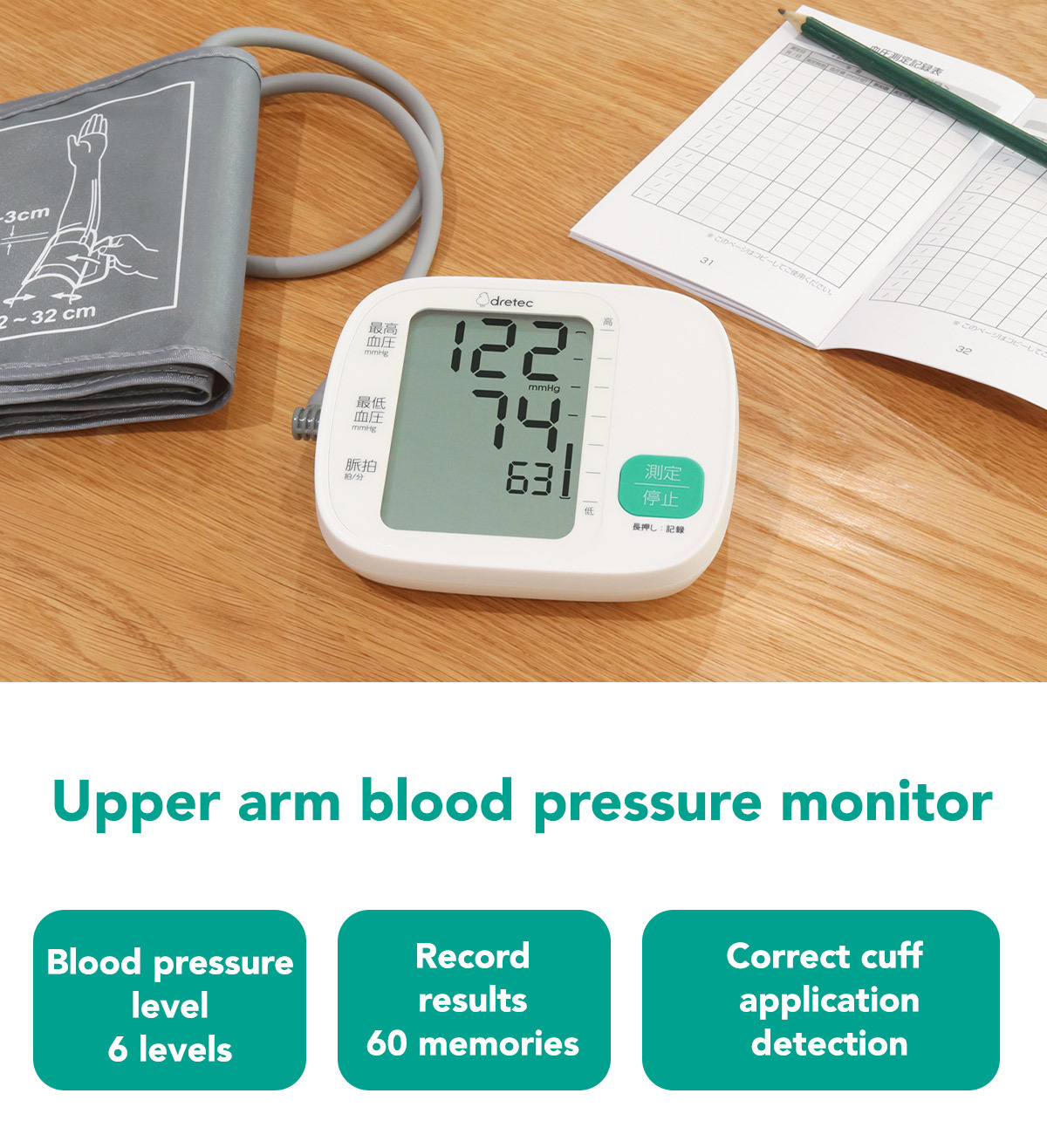 - Maximum blood pressure: 55〜255 mmHg