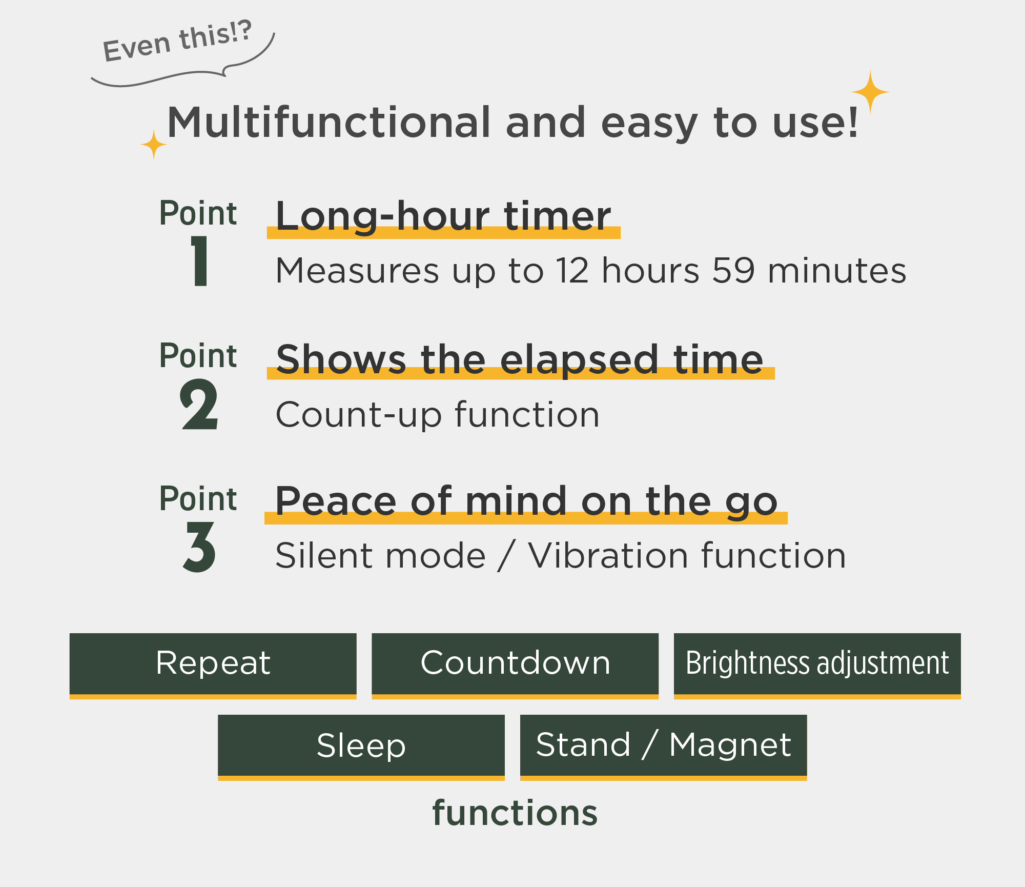 - Intuitive operation—just turn the dial! * Set minutes with the dial and hours, set time with the button.