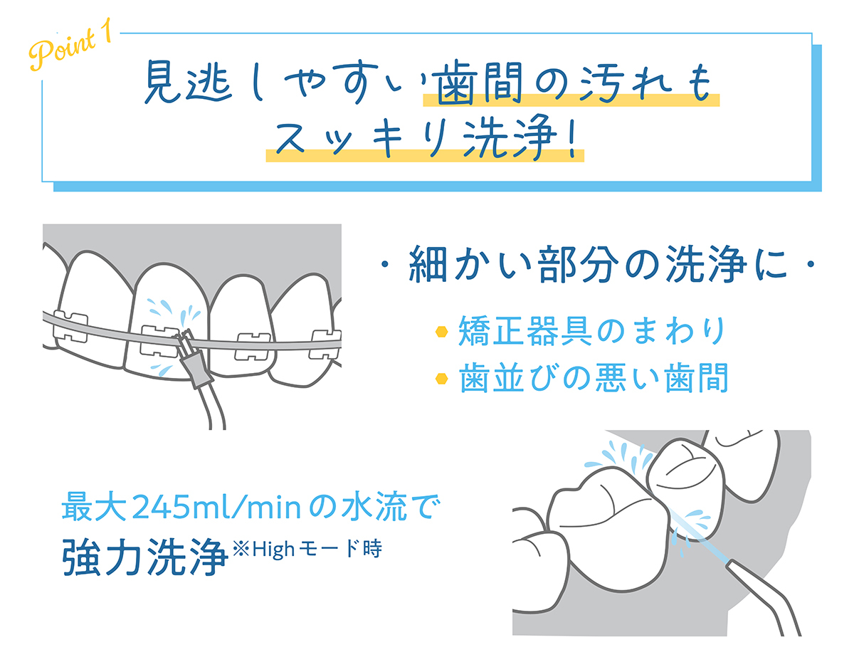 矯正器具のまわりや歯並びの悪い歯間などの細かい箇所の洗浄に!