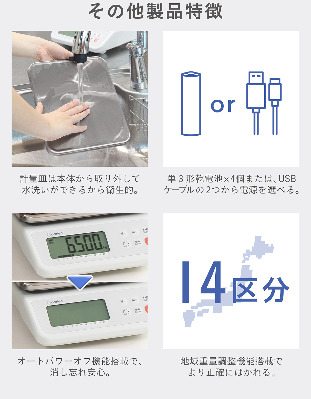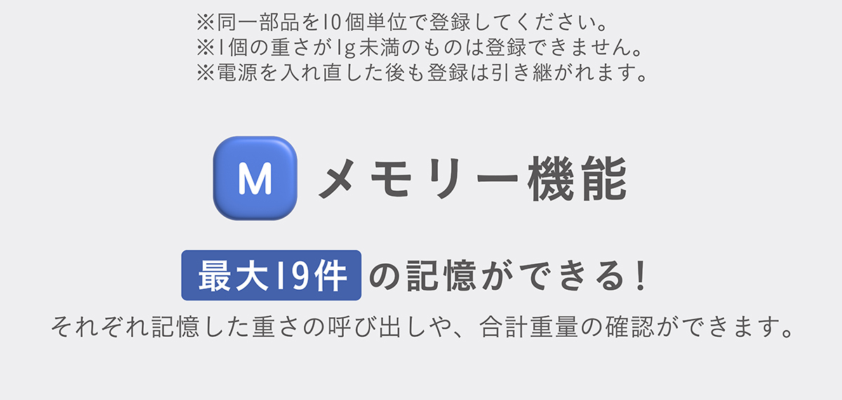 - 設定した重さに対して、計量物の重さを割合で表示する%表示機能付