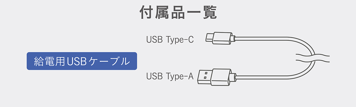 - 給電用USBケーブル1本(USB Type-A - USB Type-C)