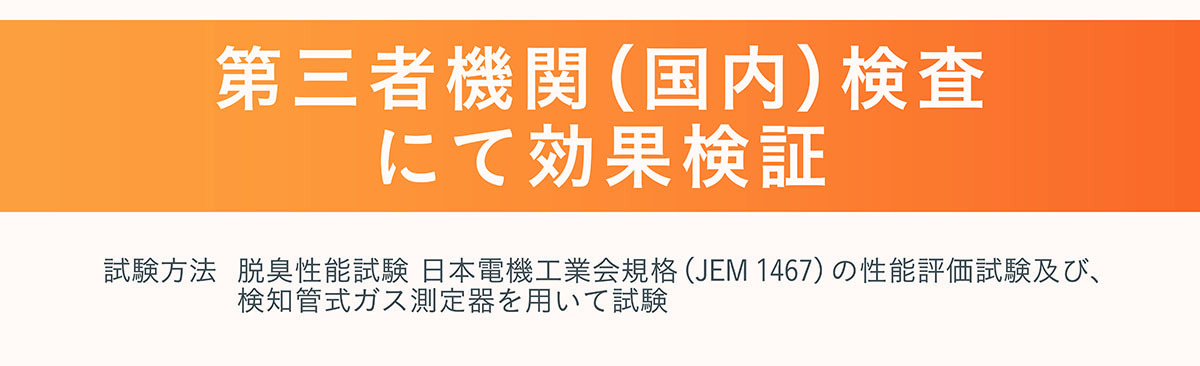 - 「酢酸」「アセドアルデヒド」にも効果あり!※JEM-1467 家庭用空気清浄機脱臭性能試験にて