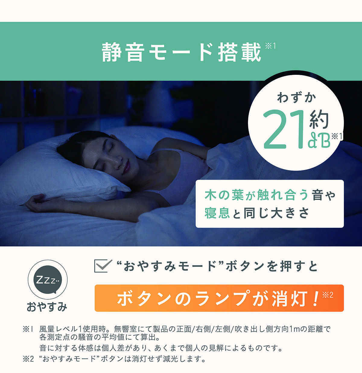 21dB(風量1、おやすみモード)