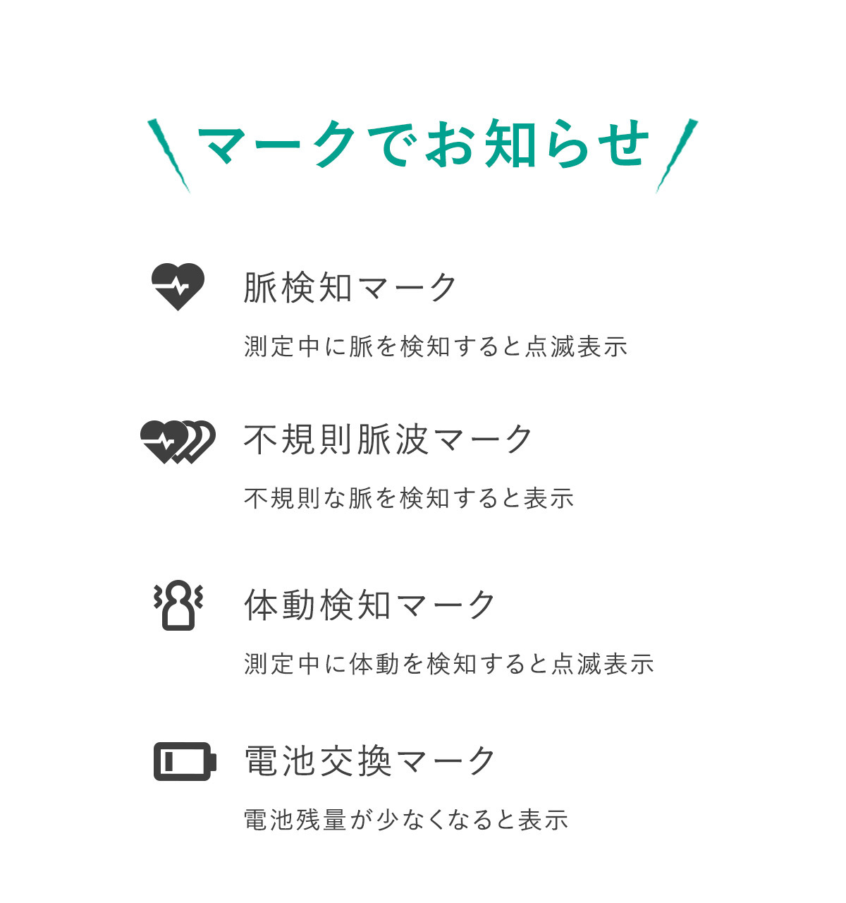 - 体動検知機能/不規則脈波検知機能/脈検知機能付