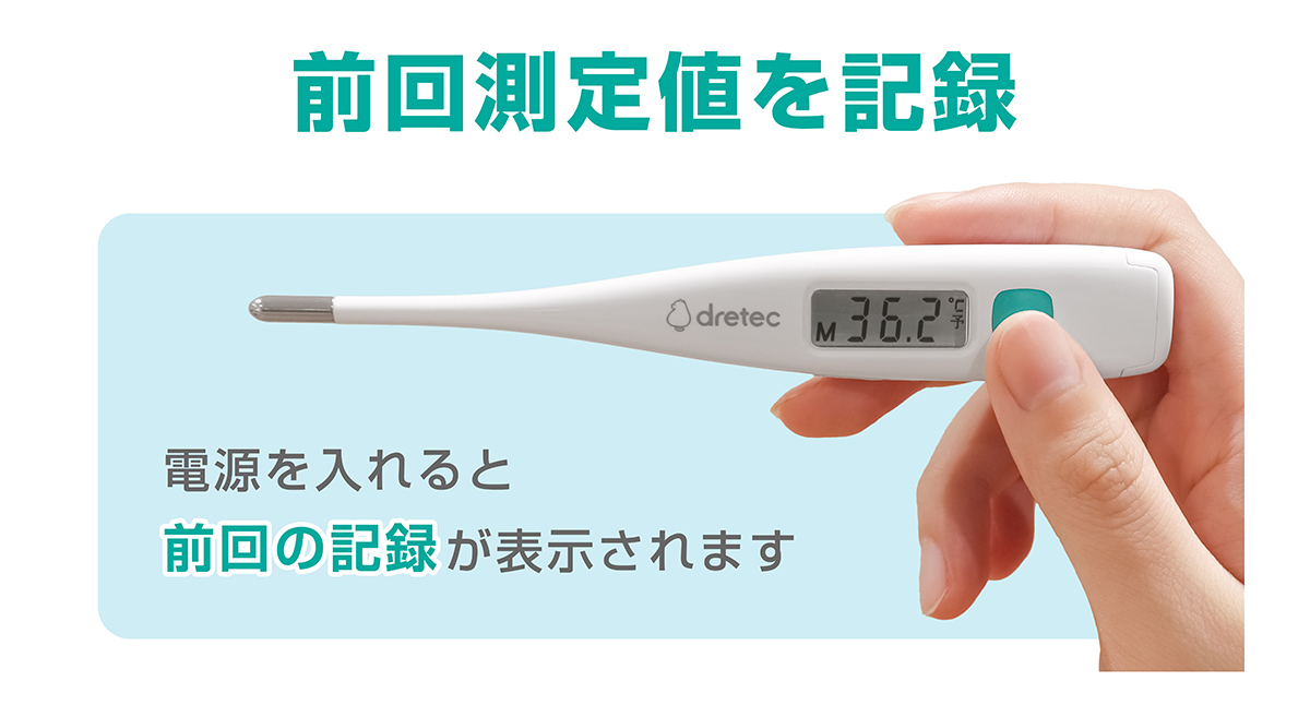 - 電源ONで前回の検温結果を表示するメモリー機能