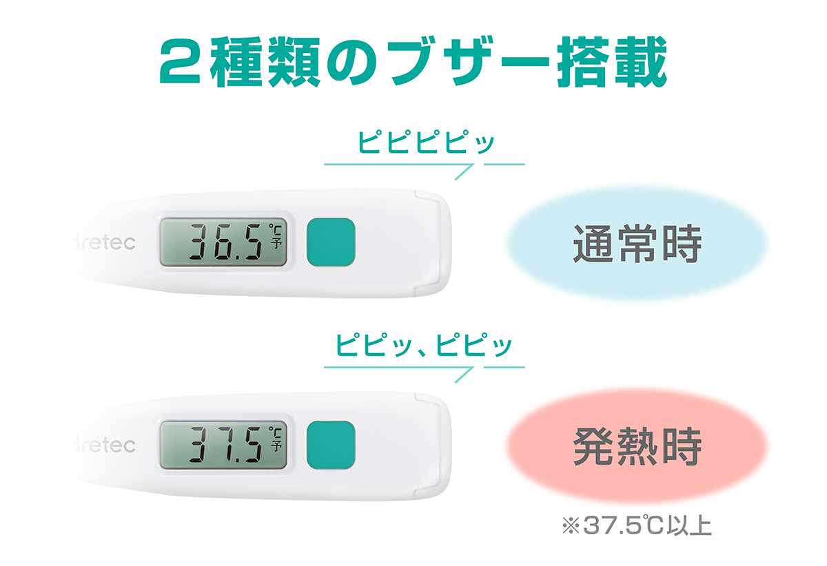 - 検温結果が37.5℃以上の場合、ブザーのリズムを変えてお知らせ