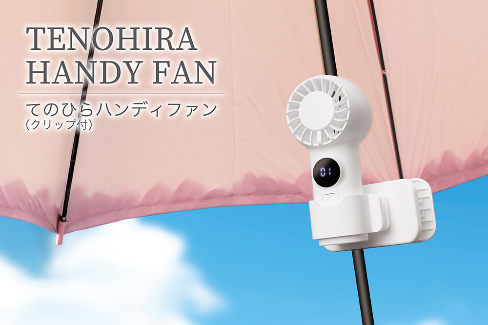 日傘に取り付けられるから両手が埋まらない!“てのひらハンディファン(クリップ付)”