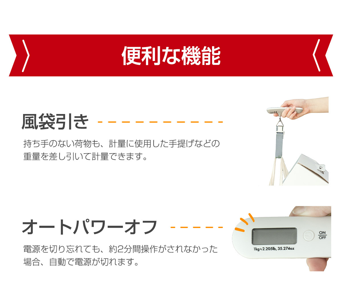 - 旅行荷物や宅配荷物などの重量がはかれる
